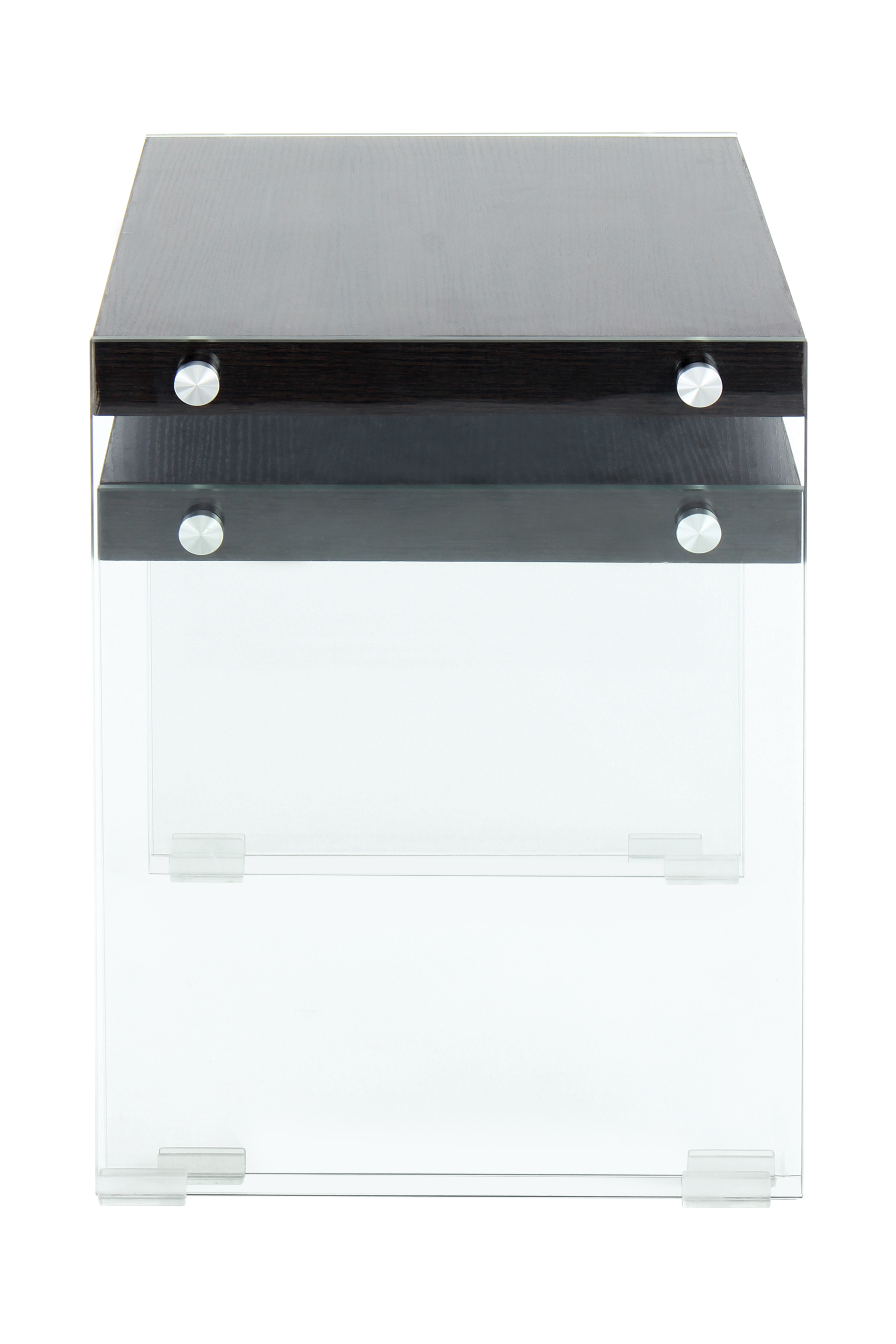 Das moderne Design dieses Beistelltisches zeichnet sich durch die transparenten Glas-Seitenwände und die unifarbenen Ablageflächen aus.