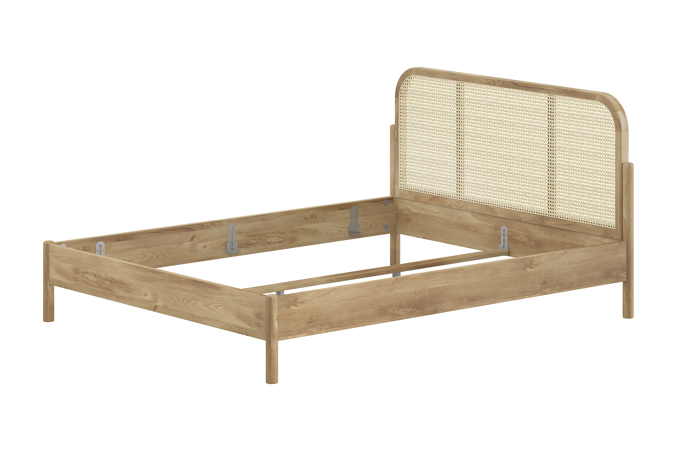 Der Rahmen des Kopfteils und die Füße sind aus massiver Eiche, die Bettseiten aus MDF Eiche Echt Holz furniert.