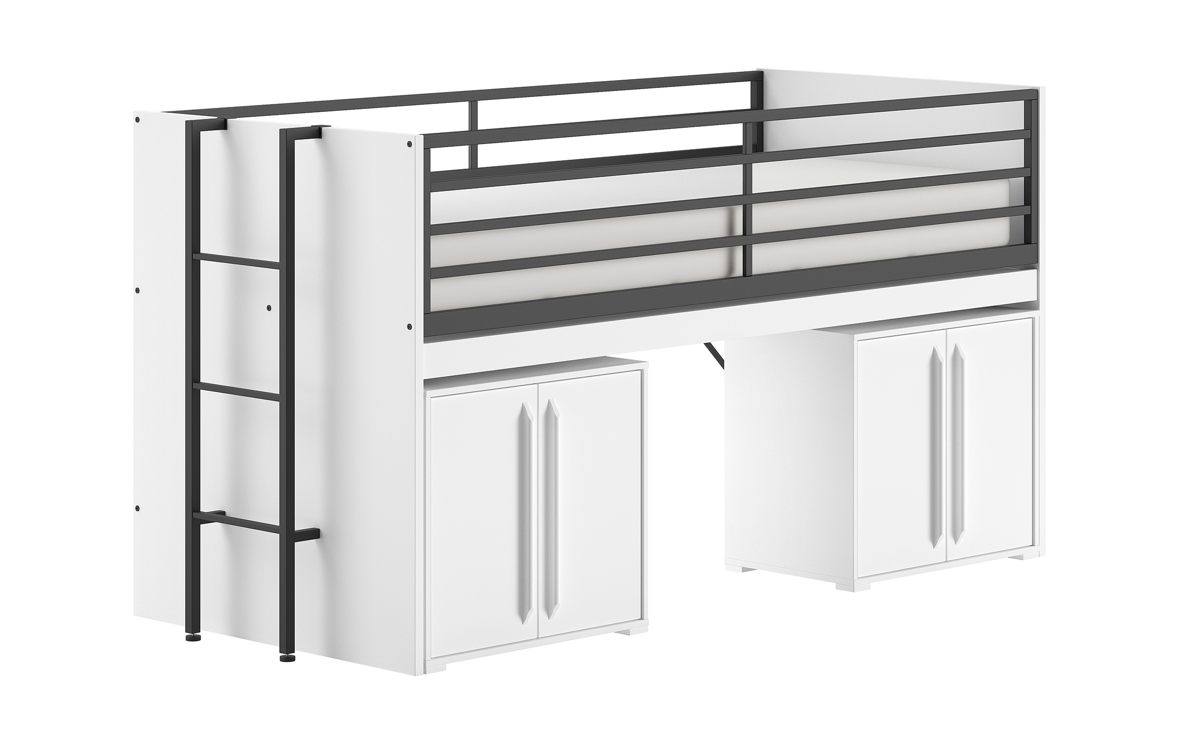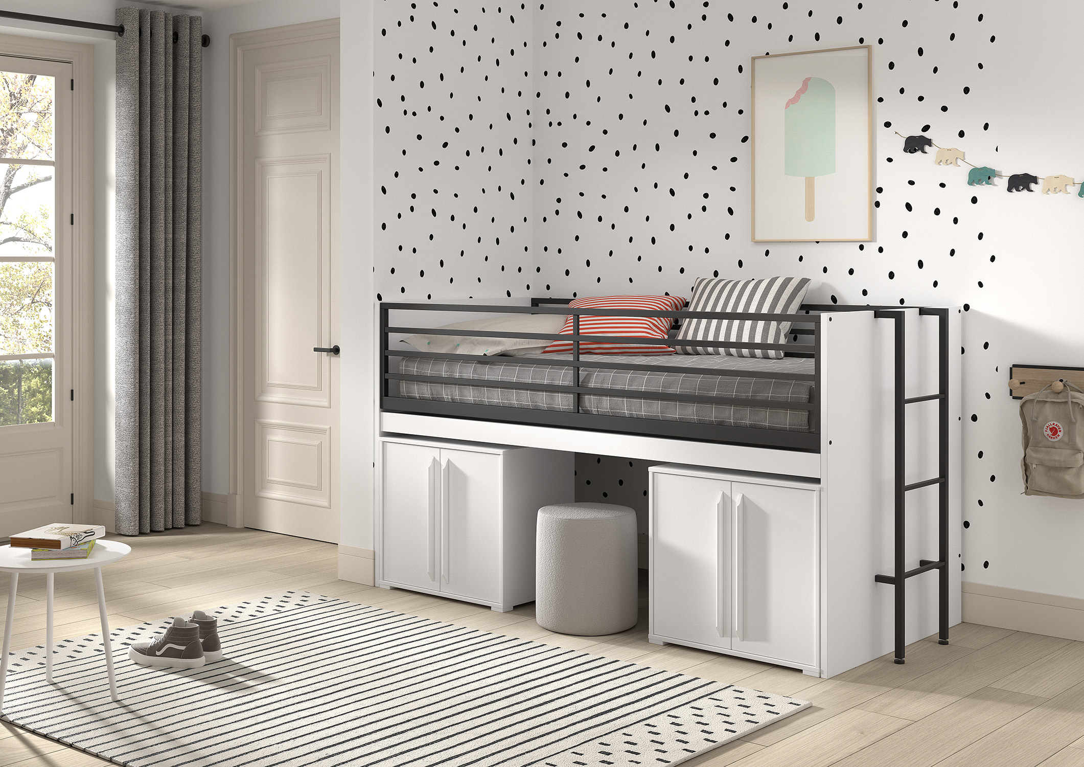 Das halbhohe Funktions-Bett SAM, mit Liegefläche 90 x 200 cm hat eine große ausziehbare Schreibplatte, die über die ganze Fläche genutzt werden kann.