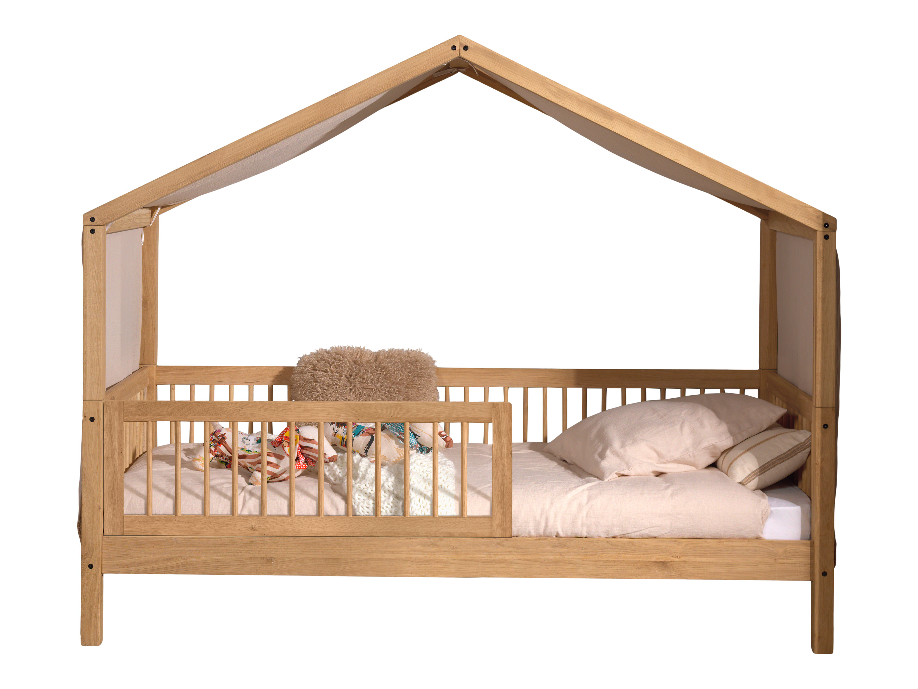 FORREST Eiche - Hausbett aus massiver Eiche, mit Liegefläche in 90 x 200 cm, seitlicher Umrandung, Hausdach und Textilhimmel.