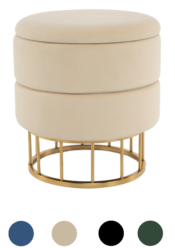- Besonderheiten: Hocker mit Stauraum, elegantes Metallgestell, glamouröses Design