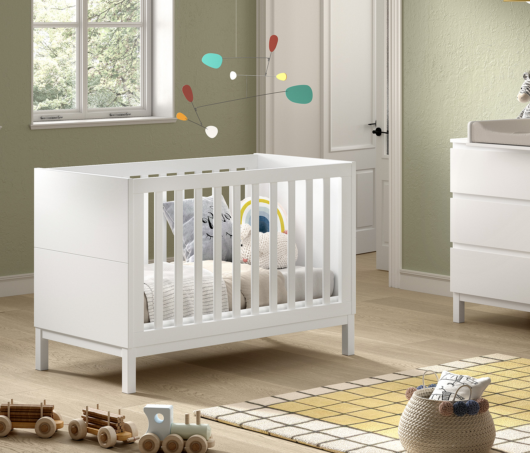Dieses wunderschöne Babybett bietet Komfort und Sicherheit zugleich.