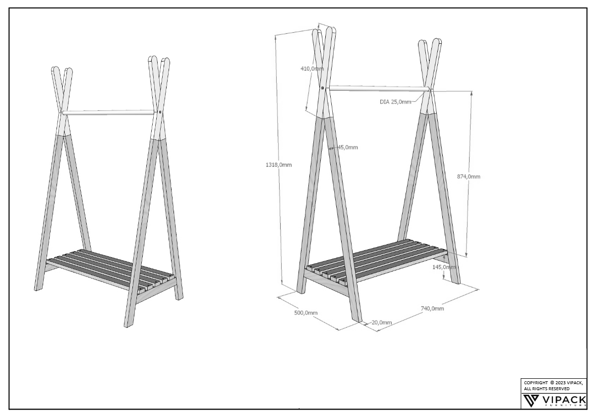 FORREST Eiche - Kleiderständer ist eine praktische Lösung für zusätzliche Hängemöglichkeiten.