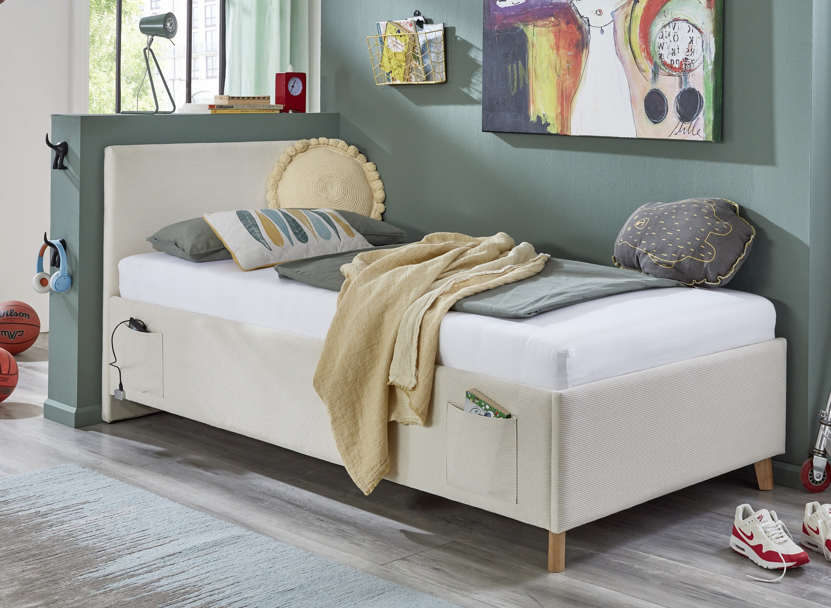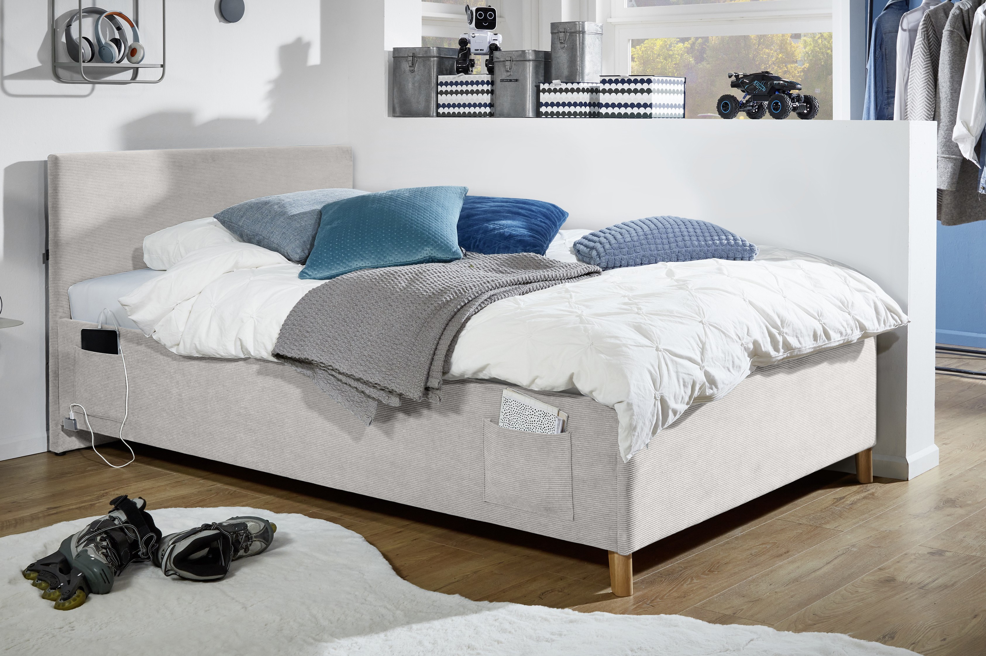 4 Betttaschen und USB-Anschluss