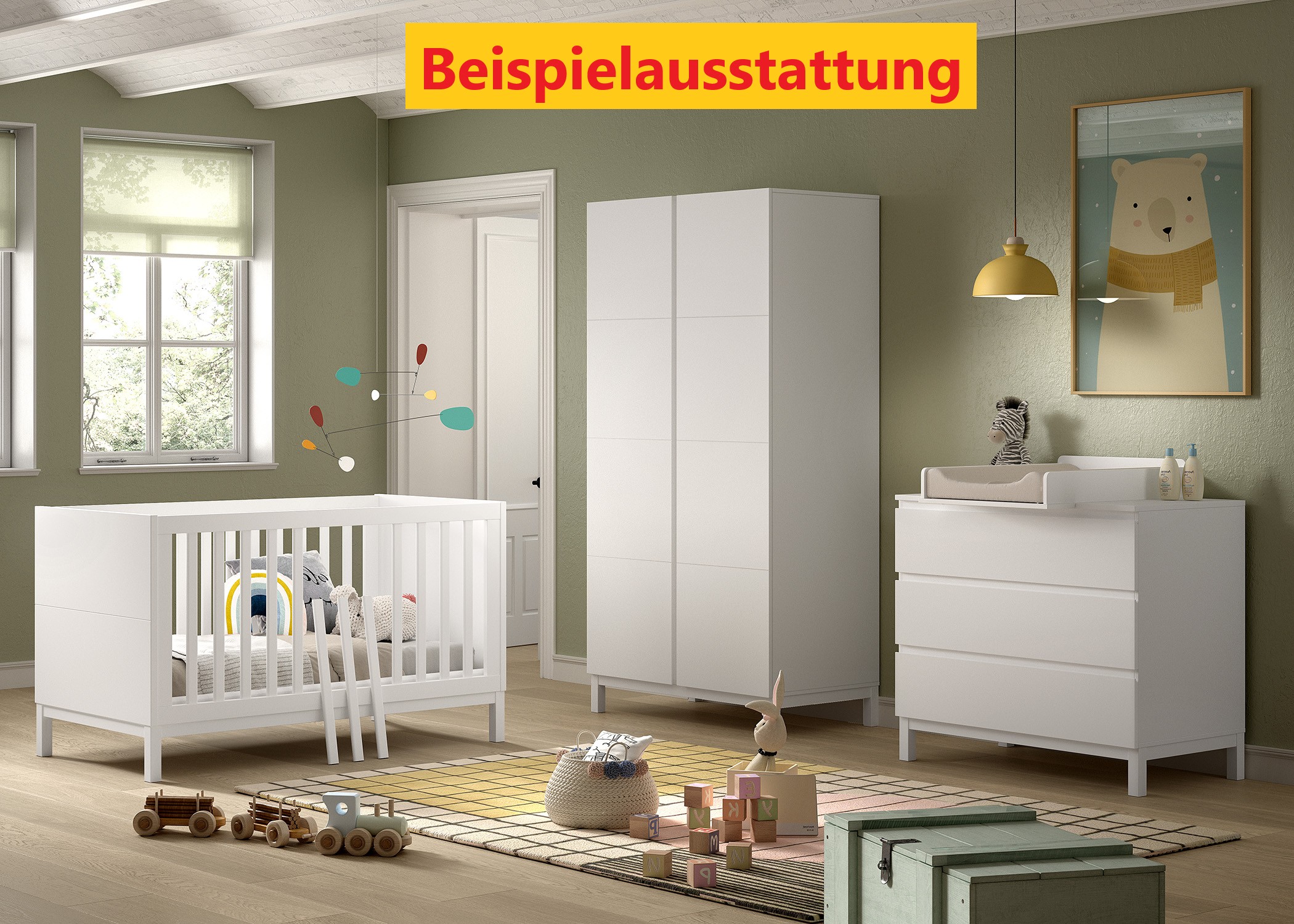 Die Deko, die Matratze und Wickelauflage gehören nicht zum Lieferumfang.