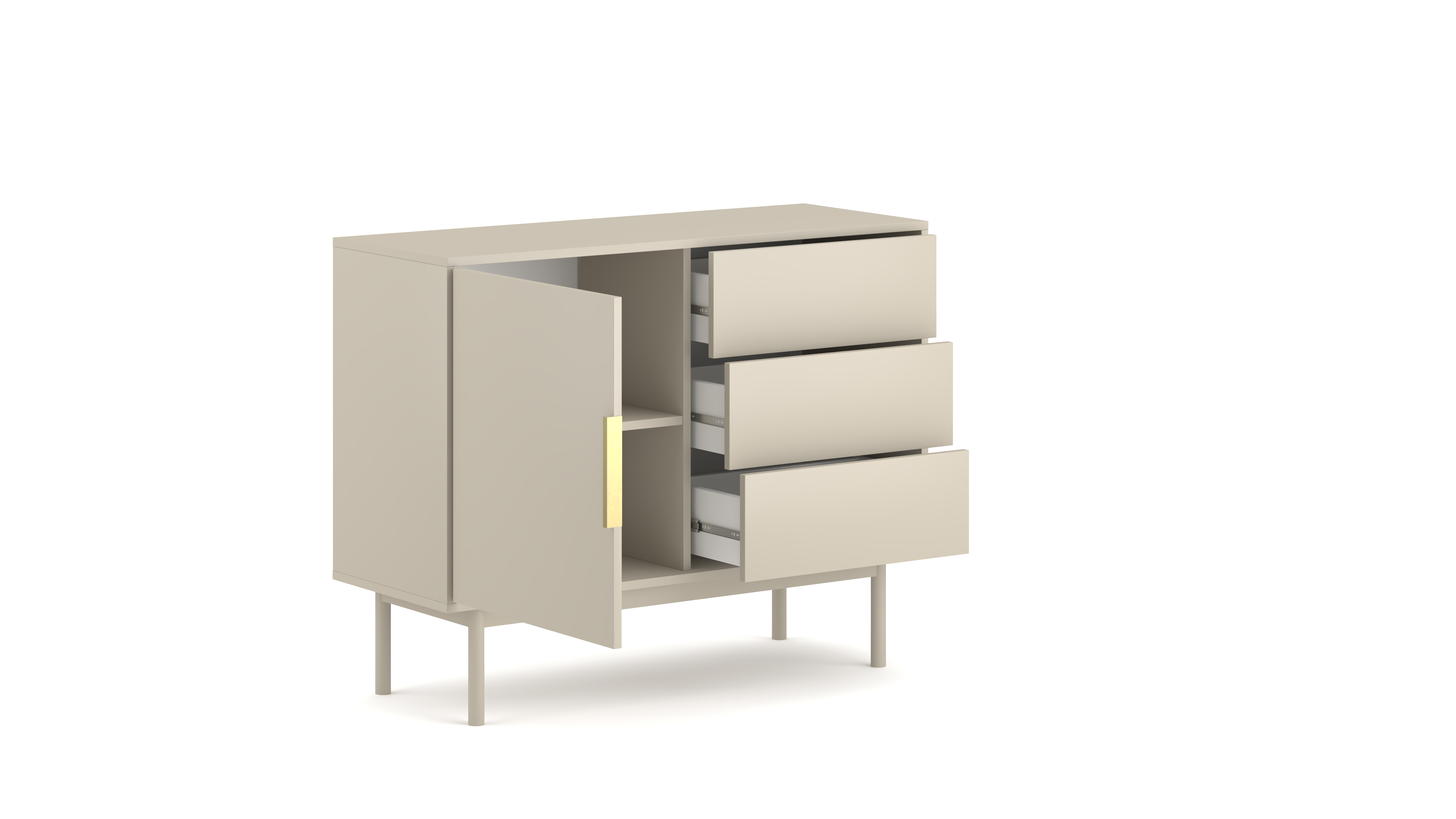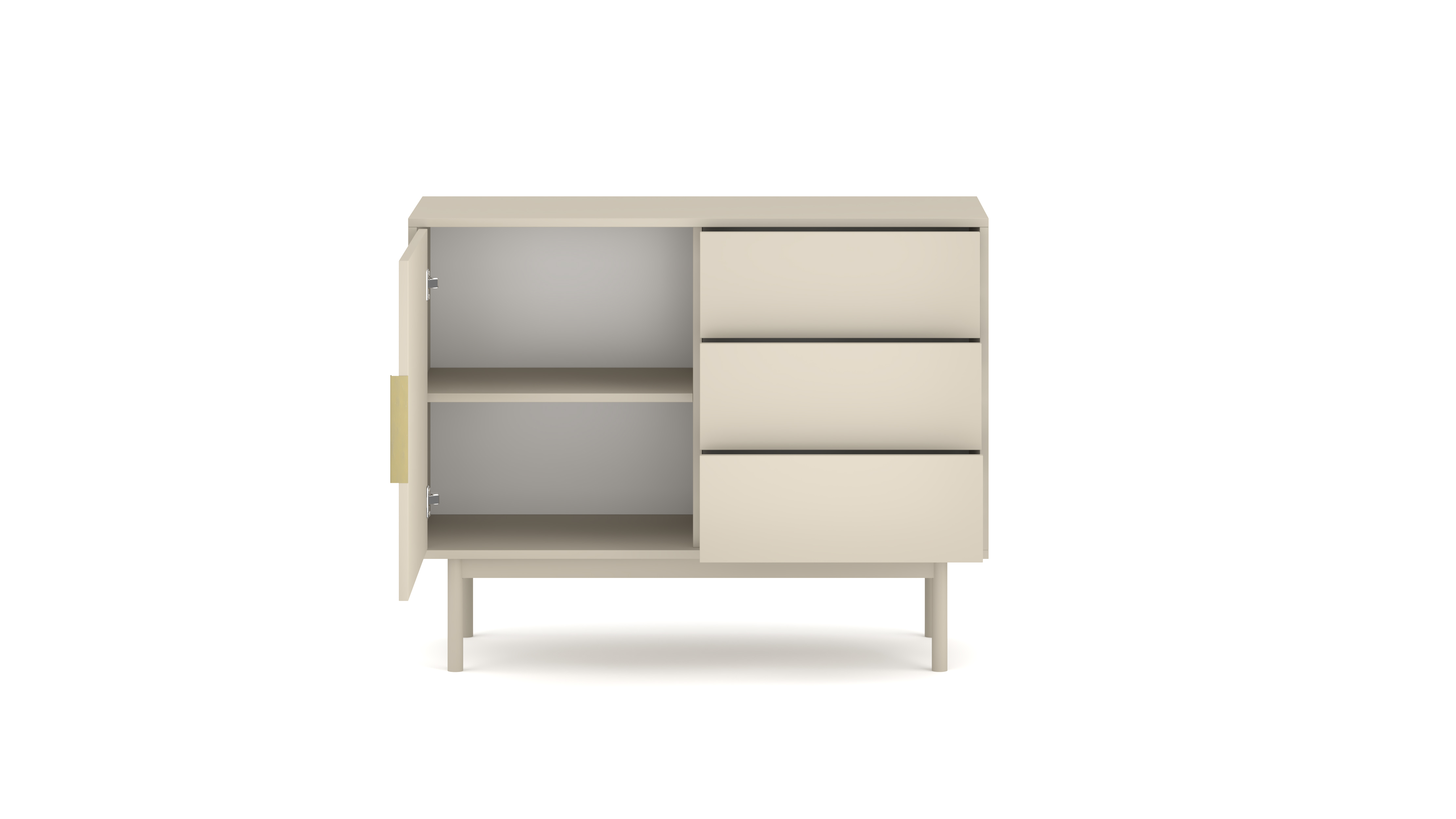 mit 1 Tür und 3 Schubladen